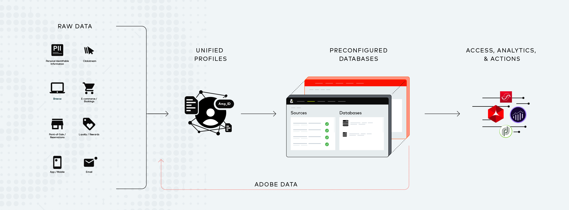 Amperity Profile Accelerator for Adobe was painstakingly designed to address existing cloud issues and to deliver value, fast. It has the power to incorporate new customer data sources — in any form — on the fly, and immediately put them into action, producing powerful insights to fuel marketing campaigns. Messy data is treated by pre-configured mapping, fitting your information into Adobe’s Experience Data Model (SDM) schema, saving time and money.